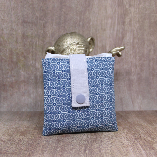 Son format compact est parfaitement adapté aux serviettes hygiéniques, tandis que sa fermeture par pression assure un maintien sécurisé. Confectionnée avec soin dans l’esprit Limanani, cette pochette allie praticité, douceur et esthétisme.