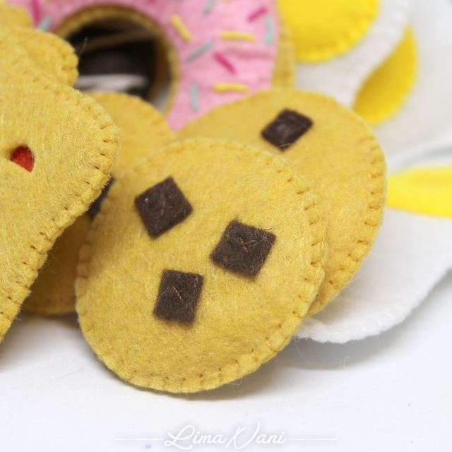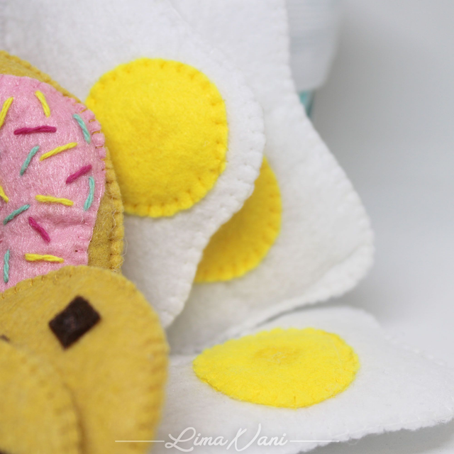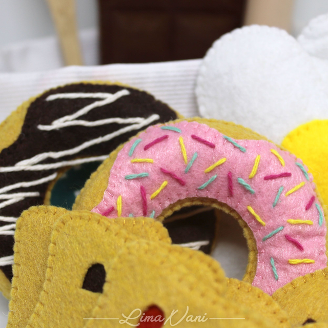 Le panier d'éveil MEA Pâtissier est un joli petit panier en coton rempli de petits objets en feutrine et bois.