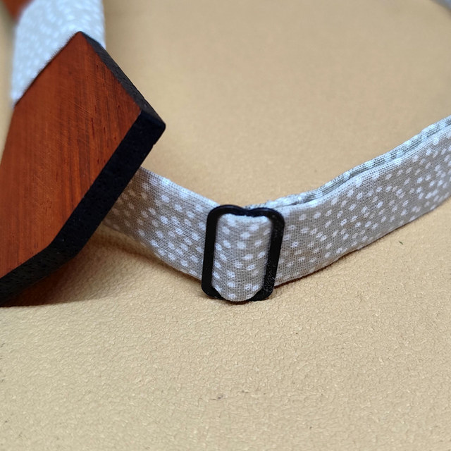 Il est équipé d’une attache en acier noir, solide et discrète, et d’un tour de cou réglable permettant un ajustement confortable et adapté à toutes les morphologies. Son design en bois en fait un accessoire durable et intemporel, qui traverse les tendances avec élégance.