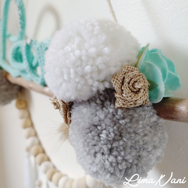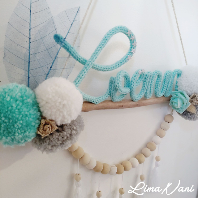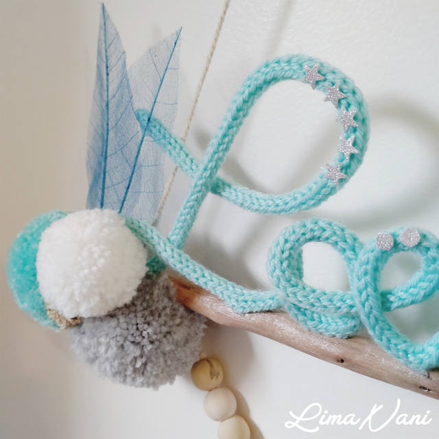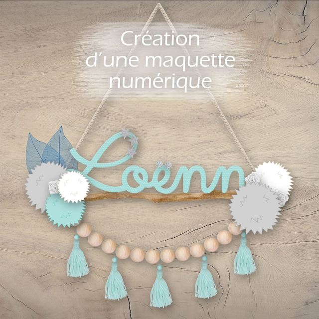 La suspension "OTI'ATI" est entièrement personnalisable. Changez les couleurs, le prénom, les pompons, la disposition, les petites décos à votre guise !