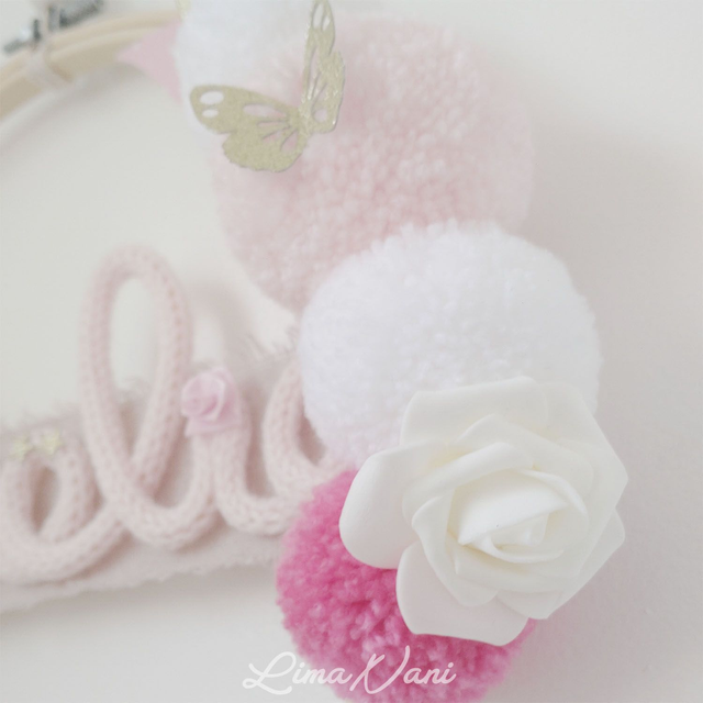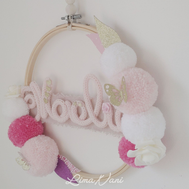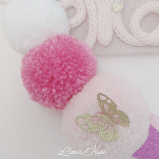 La suspension "OTI'ATI" est entièrement personnalisable. Changez les couleurs, le prénom, les pompons, la disposition, les petites décos à votre guise !